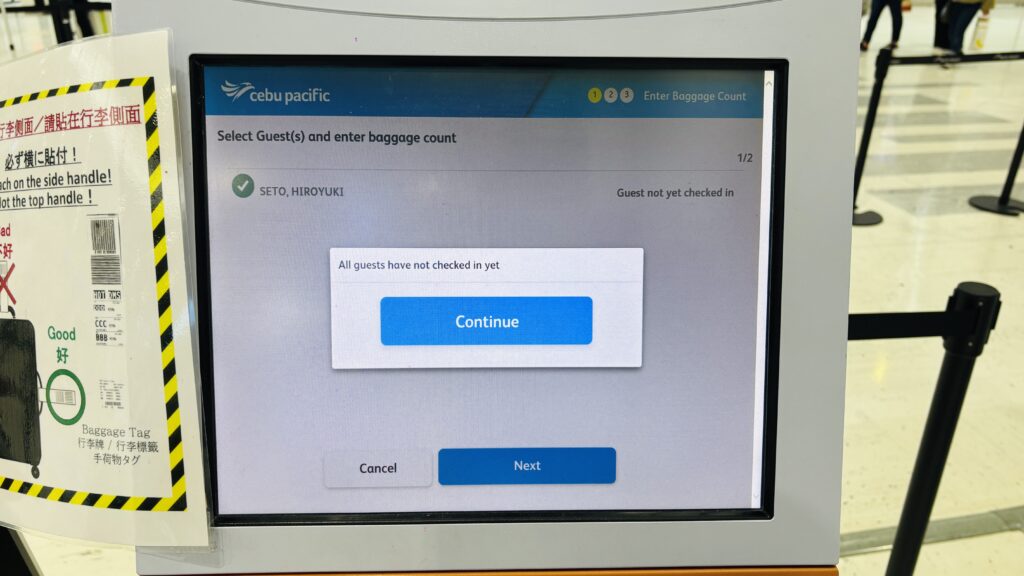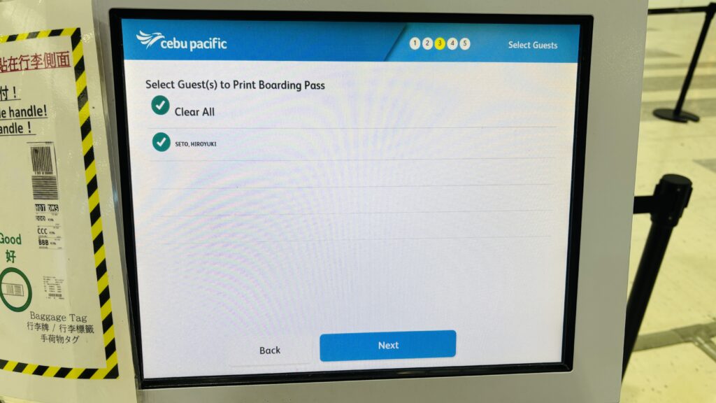 この時点でマニラ→セブ便へのチェックインも完了しており