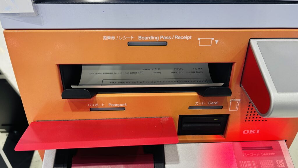 そしてボーディングパス(搭乗券)と荷物に付けるタグがプリントされます。