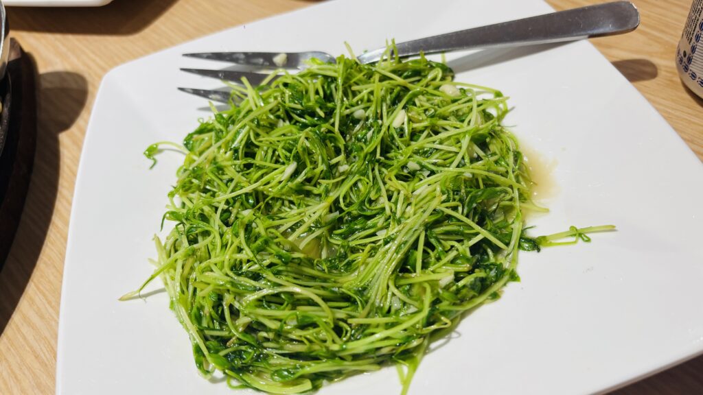 豆苗をニンニクでさっと強火で炒めた中華系の料理です。他のフィリピン料理店は見ることはありません。