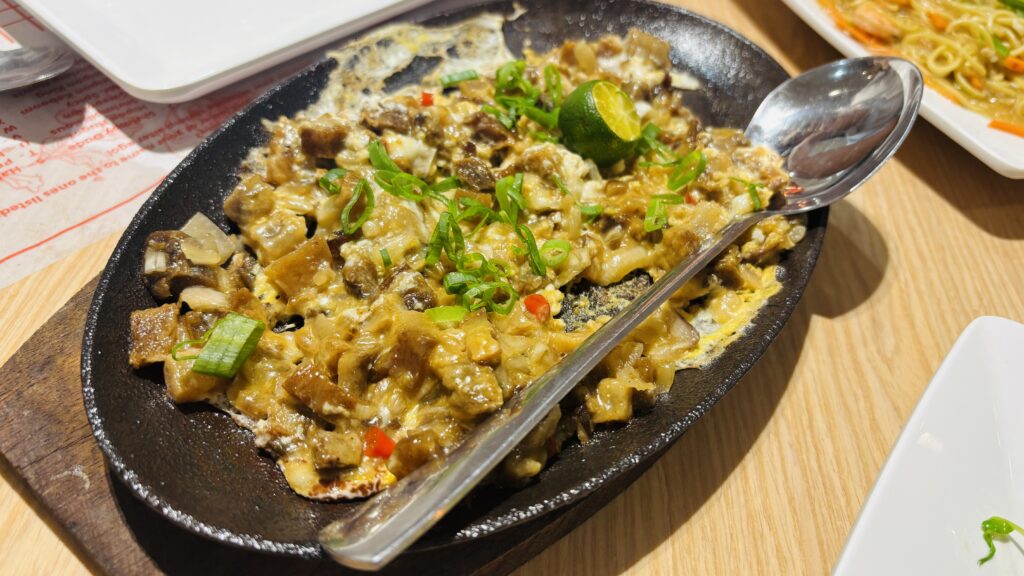 細かく刻んだ豚肉を玉ねぎやチリと一緒に炒め、カラマンシーの酸味と醤油のうま味で仕上げたフィリピンの定番料理です。熱々の鉄板で提供され卵を混ぜ、カリッとした食感と濃厚な味わいが特徴。