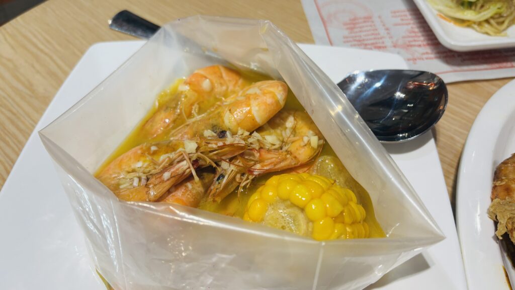・Shrimp in a Bag(袋入りエビ)※ハーフサイズ:265ペソ(ガーリックバターソース)