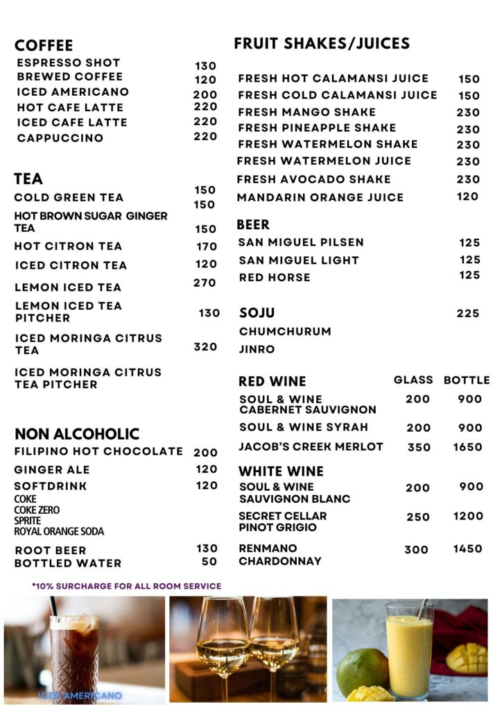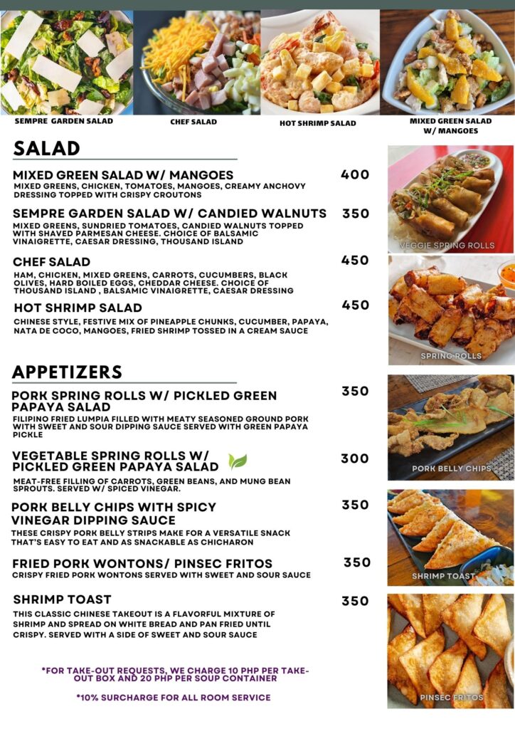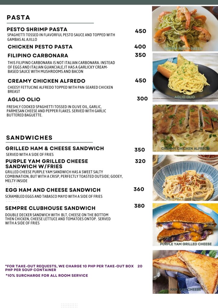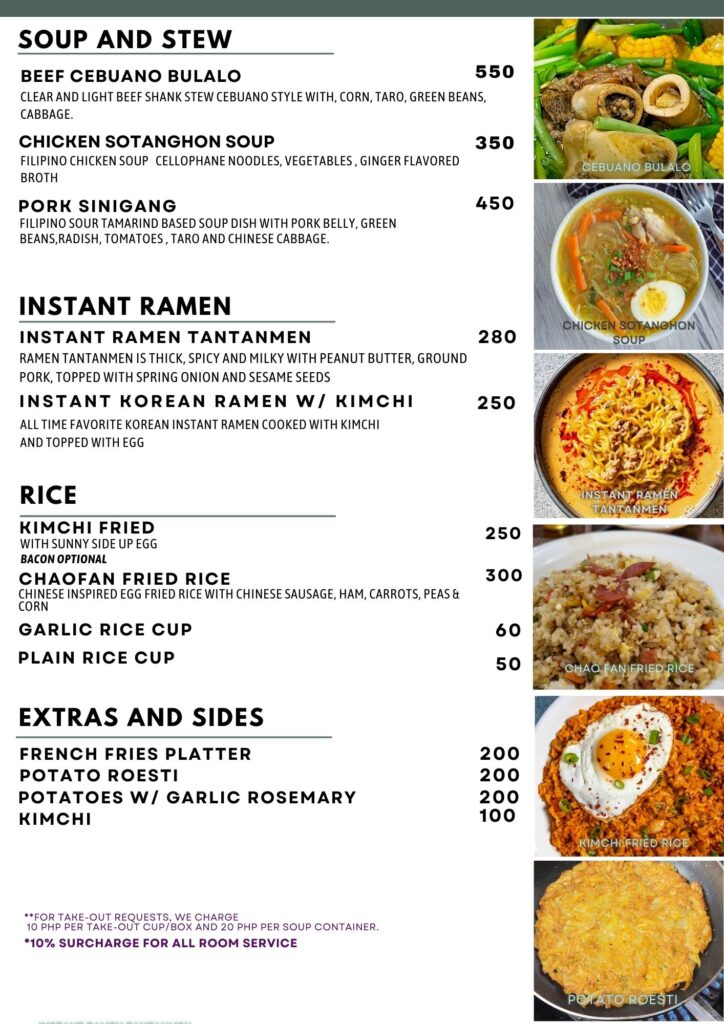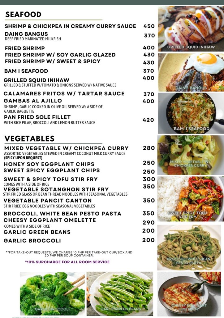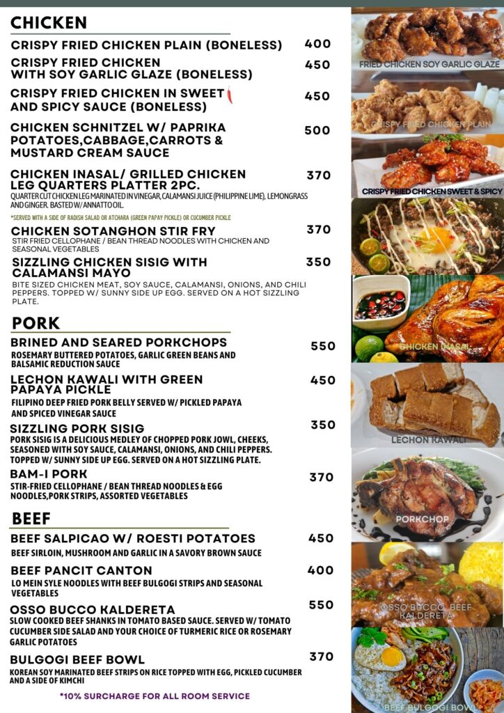 - ②フィリピン料理からアジアンまで幅広いメニューが300ペソ台〜