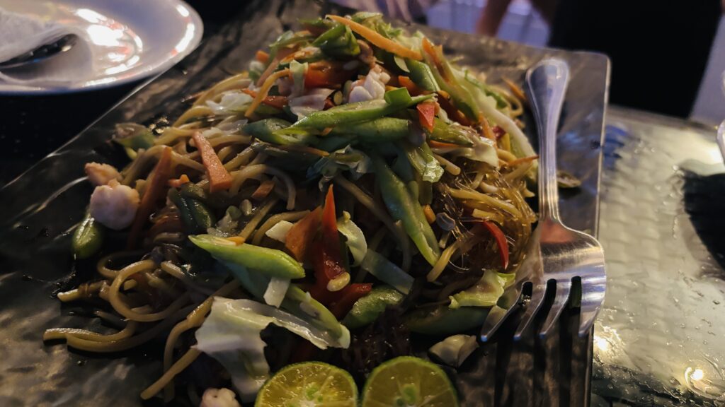 フィリピン式の焼きそば。太麺と春雨の2種類が混ざっているのが特徴。