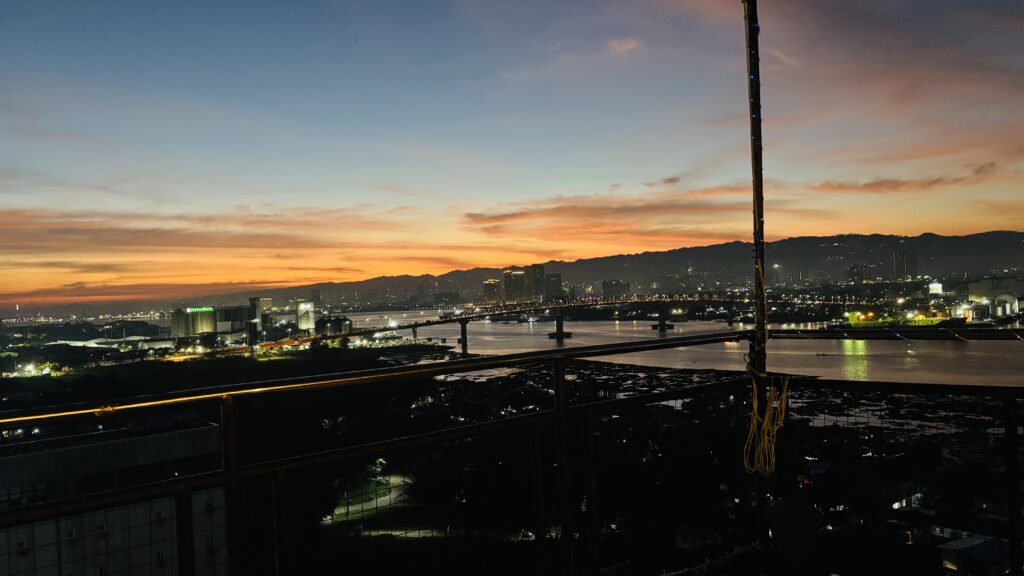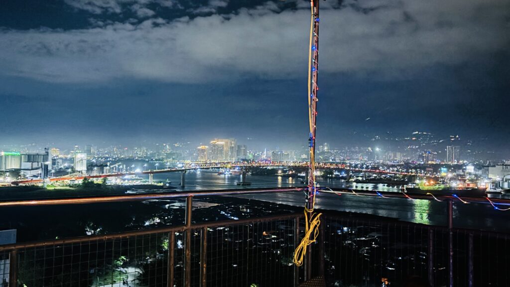 日が完全に落ちると、今度は夜景タイム。マクタン島とセブを結ぶオールドブリッジのライトアップとセブ市街の灯りが一面に広がります。