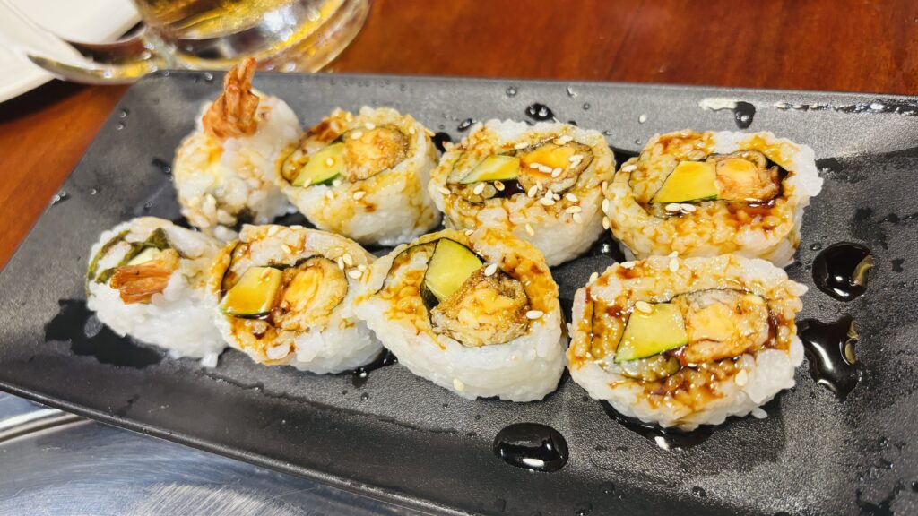 海老天がゴロッと入った巻き寿司です。いや、焼き寿司とはいえ正確に言うと焼肉屋で寿司が食べられること自体が但馬屋の面白さです。