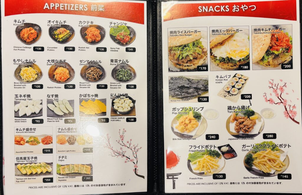 - TAJIMAYA SET A(お得セット):2,300ペソ