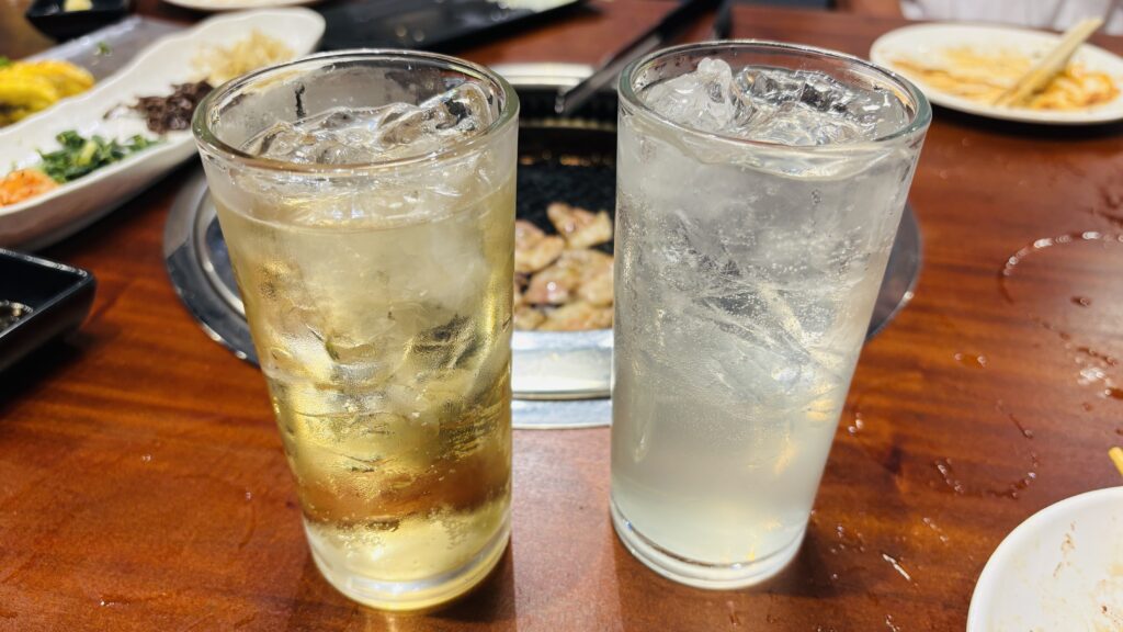 焼肉にビールは最強の組み合わせです。フィリピンの定番サンミゲルが160ペソ。焼酎ハイやレモンサワーも揃っています。