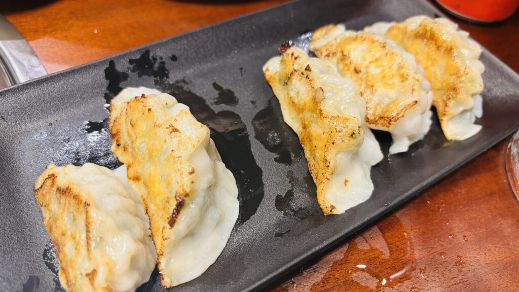 パリッと焼かれた餃子も美味しかったです。皮は厚めでモチモチ。中の餡もしっかり詰まっていてとても美味しかったです。